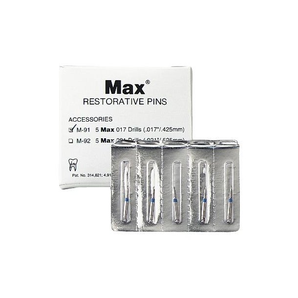 max restorative pins, M91, 5/pkg, drills, m-91 .017 x .075mm (blue)