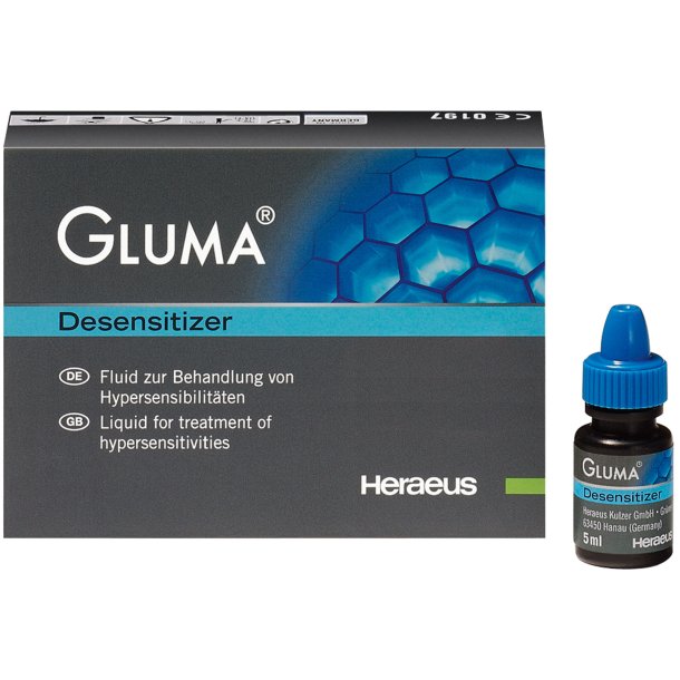 Gluma Desensitizer is indicated for treating cervical hypersensitivity and eliminating dentinal hypersensitivity. It is also used as a pretreatment to priming and bonding for direct composite restorations.