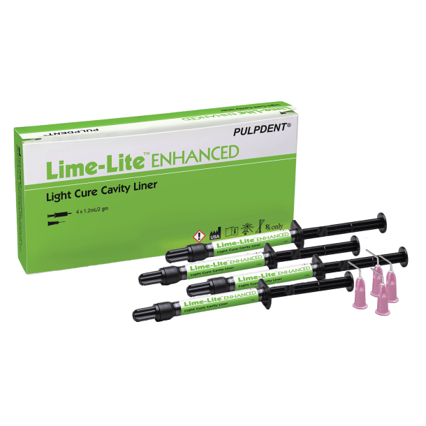 Compares to Bisco TheraCal LC and Ultradent Ultra-Blend plus!Lime-Liteâ„¢ Enhanced is a bioactive light-cure cavity liner specially formulated for use with adhesives, composites, and conventional restorative materials. It is powered by patented technologies, making it the ideal choice for a range of patients and clinical situations:
