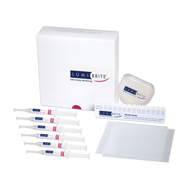 Lumibrite Take-Home Whitening System is a 16% carbamide peroxide concentration whitening system in a delicious mint flavor that is proven to be effective in whitening teeth in under two weeks. Offers minimal sensitivity.