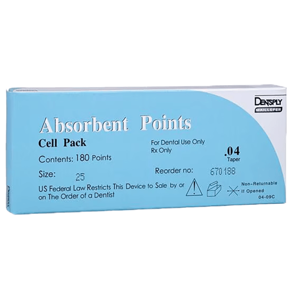 Absorbent Paper Points are used in endodontic therapy to dry or maintain a liquid disinfectant in the root canal. Drying of the root canal is an important step for successful hermetic sealing.