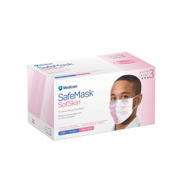 SafeMask SofSkin Procedure Earloop Masks - Level 3, Shingle Pleat, Pink, 2088, 50/Box
